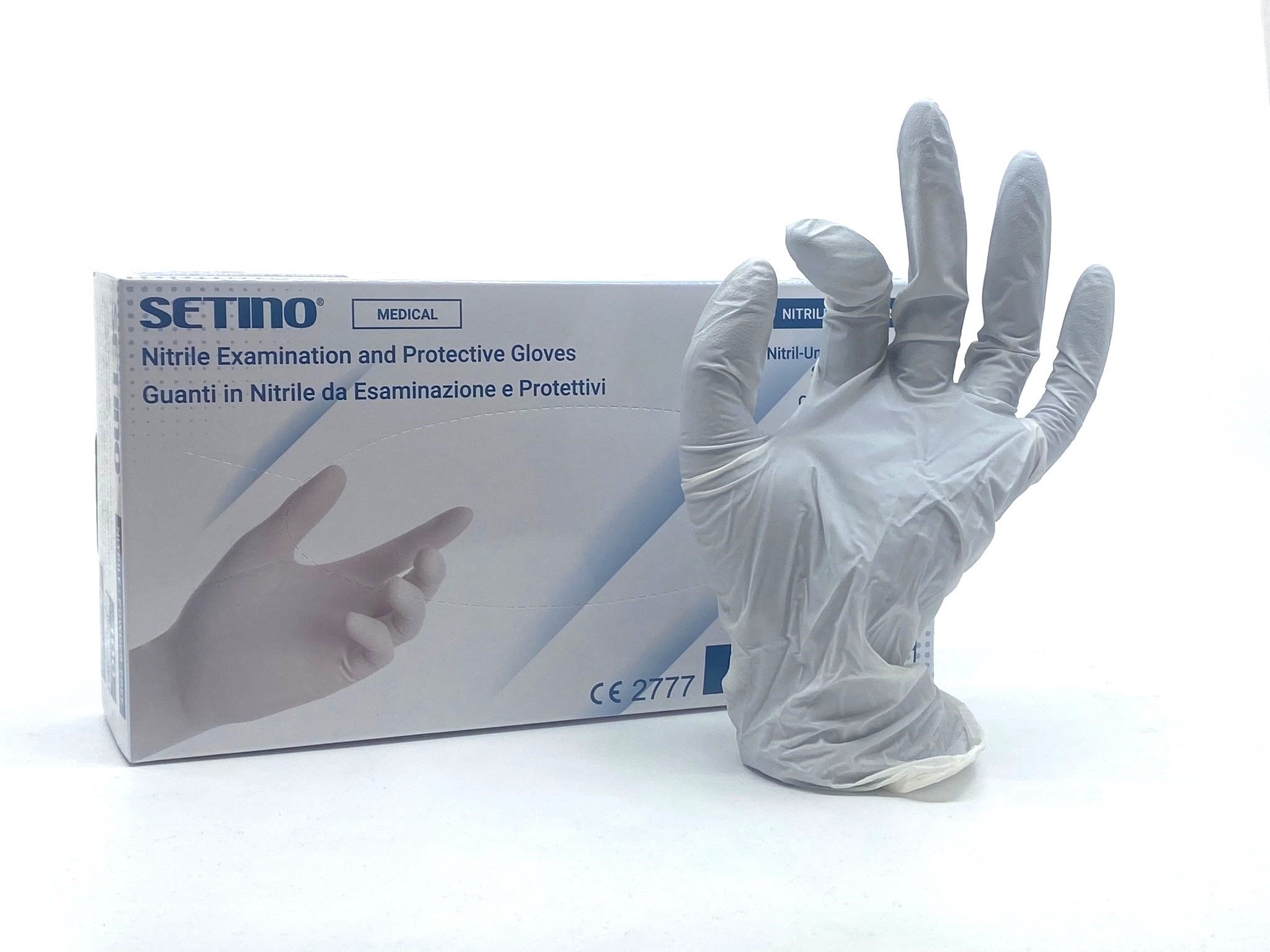 Texturované na špičce prstu, bezlatexové rukavice nejvyšší kvality SETINO vhodné nejen do zdravotnictví, ale i do průmyslu a potravinářství.