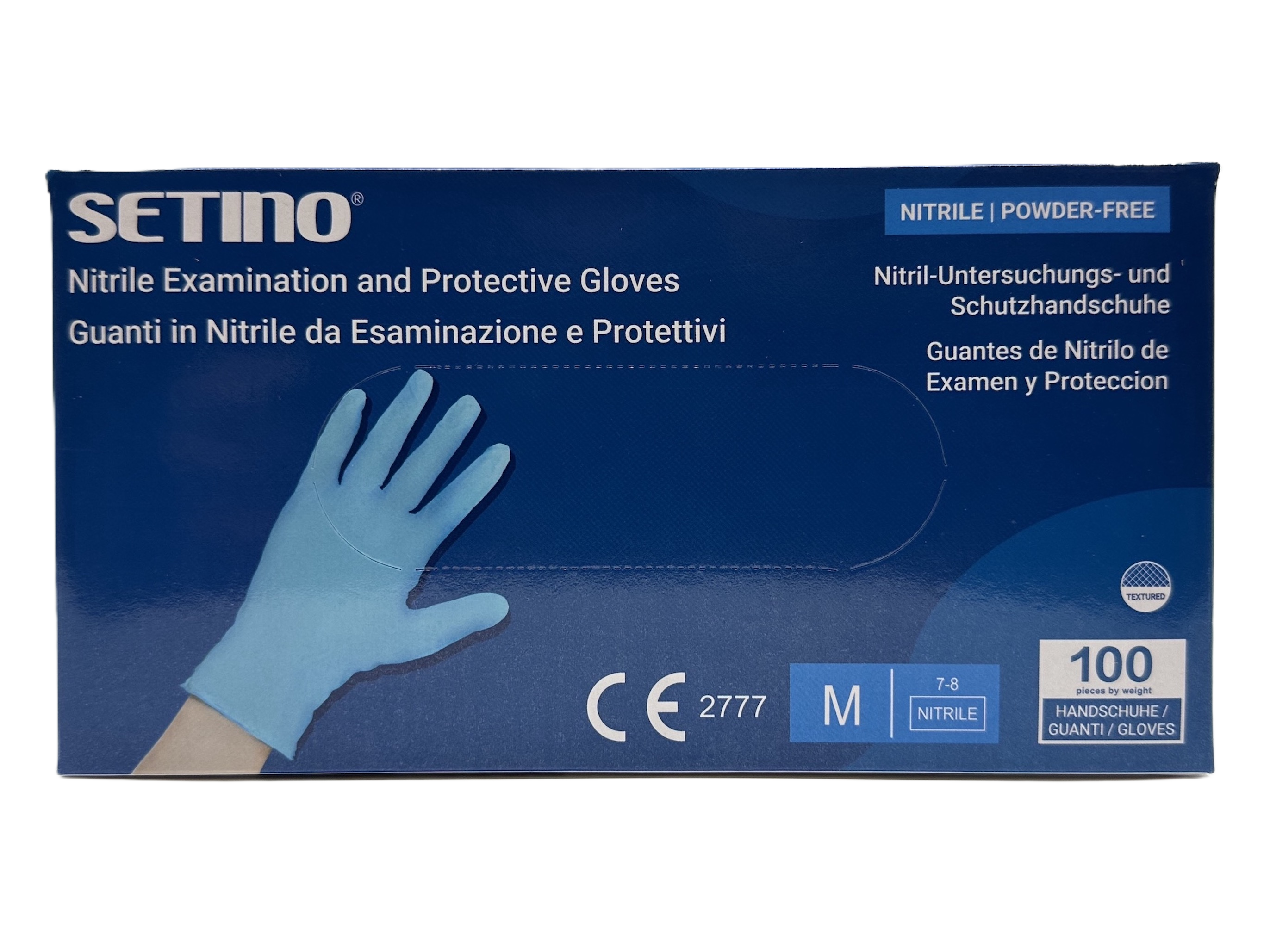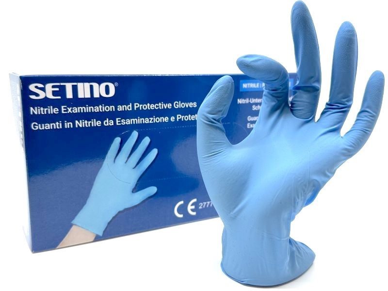 Jednorázové ochranné nitrilové rukavice SETINO - modré, PF/TXT (100ks/bal)