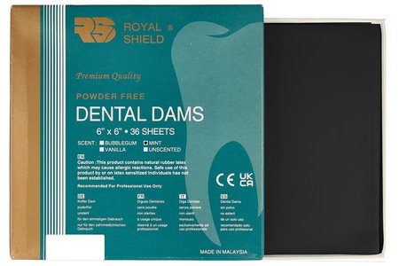 • Kofferdam Royal Shield je bez vůně a má modrou barvu pro lepší vizuální rozlišení operačního pole.