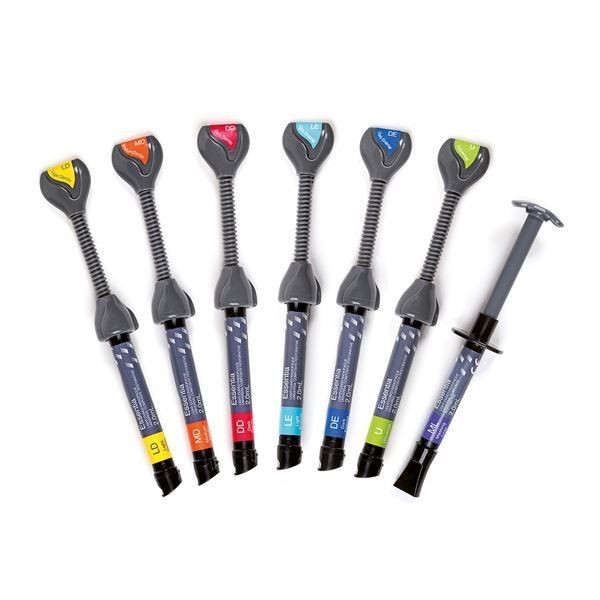 • Kompozitní materiál Essentia LE 2 ml světlem tuhnoucí, radioopákní, univerzální výplňový materiál.