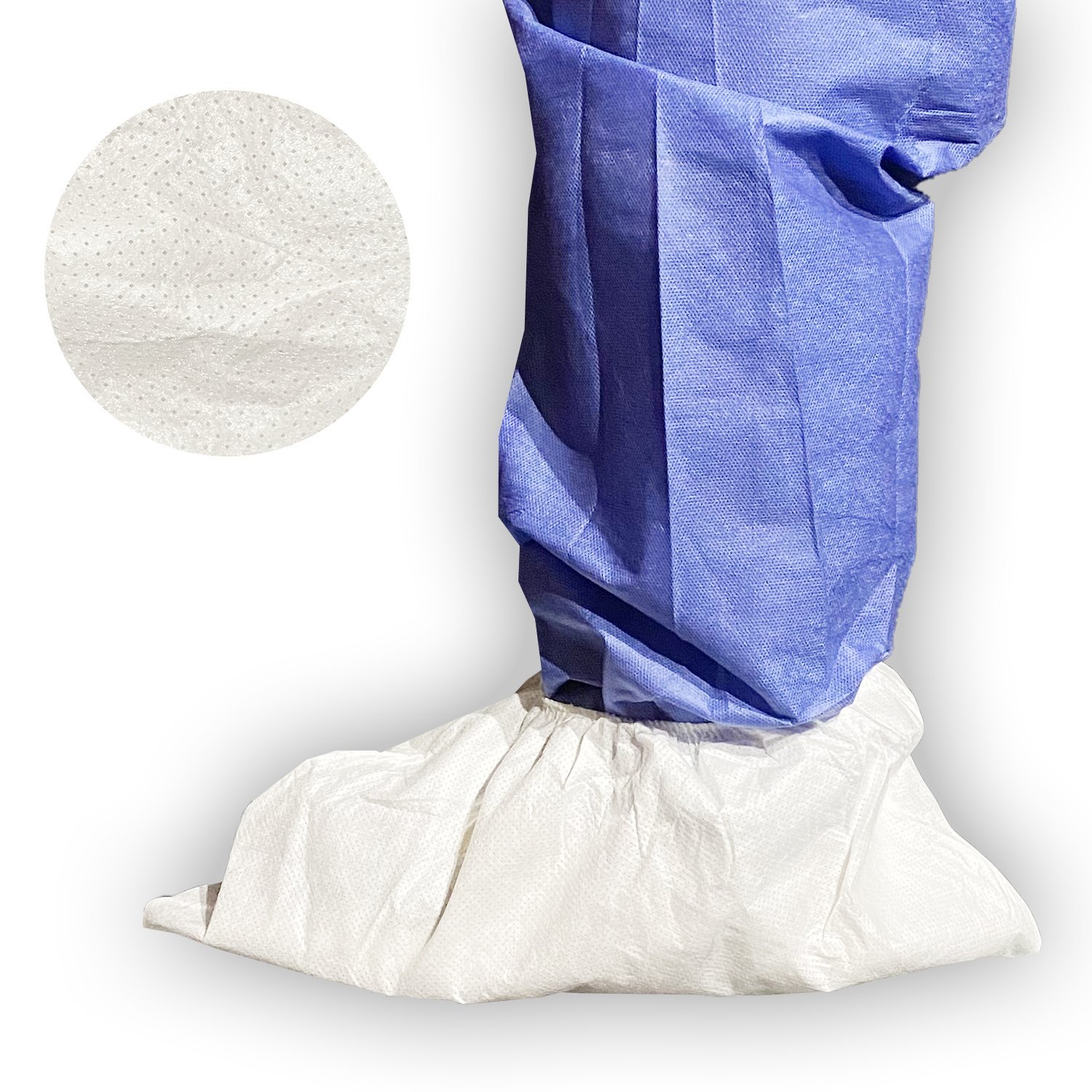 Jednorázový návlek na obuv z netkané textilie vyrobený kombinací technologií spunbond (S) a meltblown (M) z polypropylenu, 60g/m2. Základní vlastností tohoto typu netkané textilie jsou bariérové vlastnosti, kterých se využívá pro zabránění průniku tekutin či pro separaci velmi jemných pevných částic.