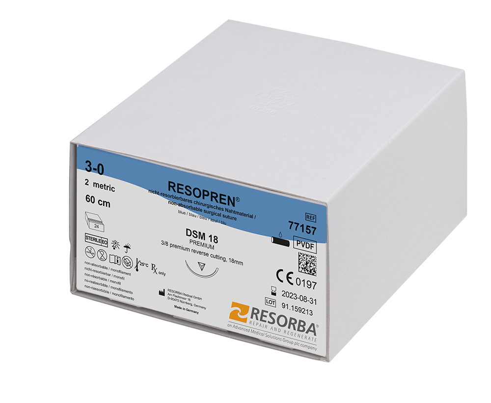 RESOPREN® je monofilní, modré syntetické vlákno z polyvinylidendifluoridu (PVDF). Vlákno se vyrábí z barveného granulátu metodou suchého zvlákňování. Je chemicky inertní, odpuzuje vodu a je extrémně odolný proti stárnutí. Materiál je obarvený fyziologicky nezávadným barvivem.